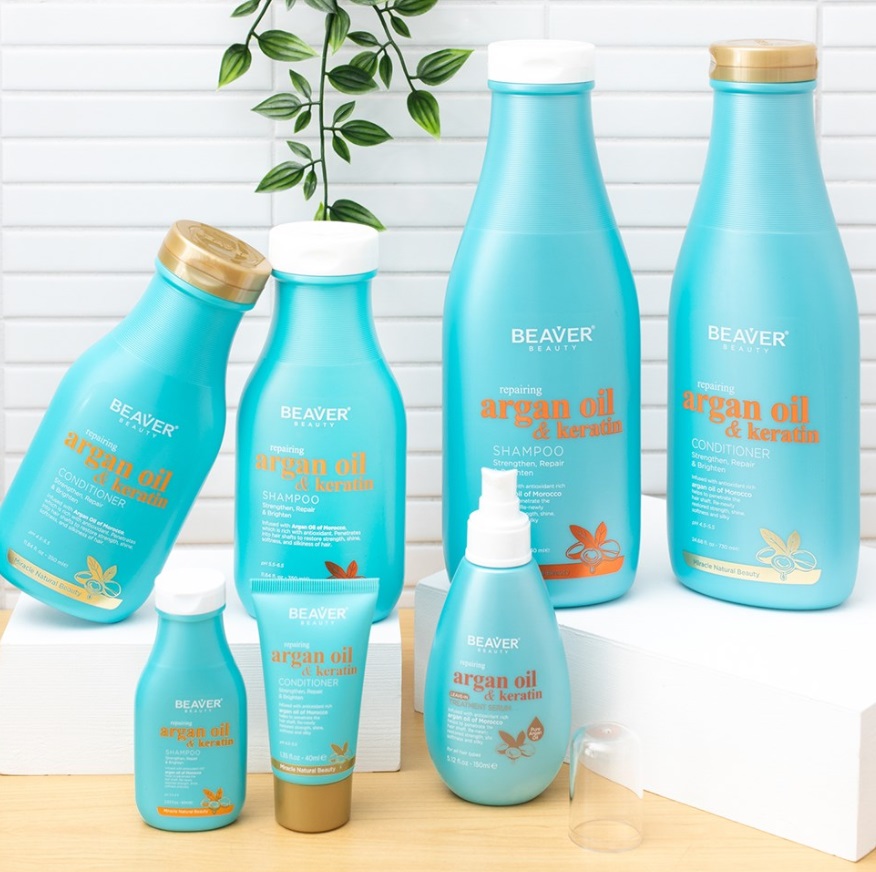 Beaver Argan Oil & Keratin Aceite capilar reparador, su fórmula enriquecida con aceite de argán rejuvenecedor, queratina y extractos botánicos nutre, fortalece y repara cada hebra, devolviendo la suavidad y elasticidad natural del cabello.