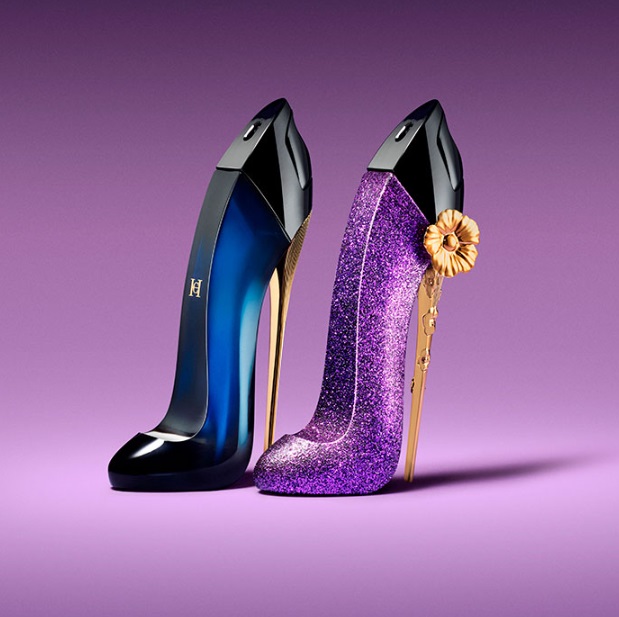 Su frasco el icónico stiletto de Good Girl edición limitada, está envuelto en un brillante morado como el cielo nocturno y una resplandeciente flor dorada con un toque único.