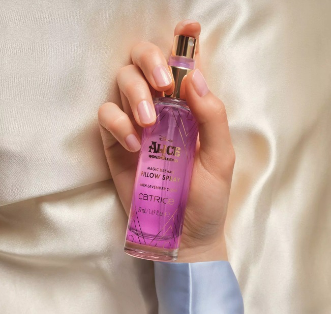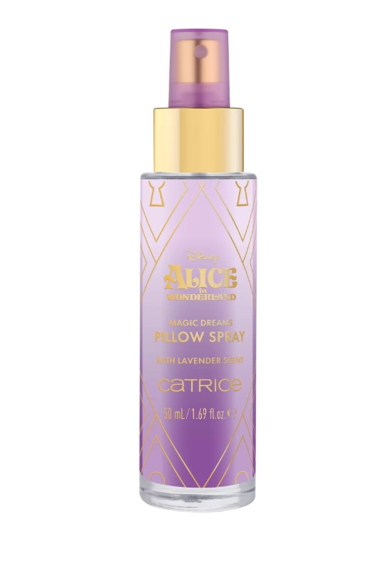 Catrice Alice in Wonderland Bruma textil Magic Dreams Pillow convierte tu rutina nocturna en un momento de calma y bienestar gracias a su fina bruma aromática con aceite esencial de lavanda y un delicado aroma fresco y reconfortante para la almohada.