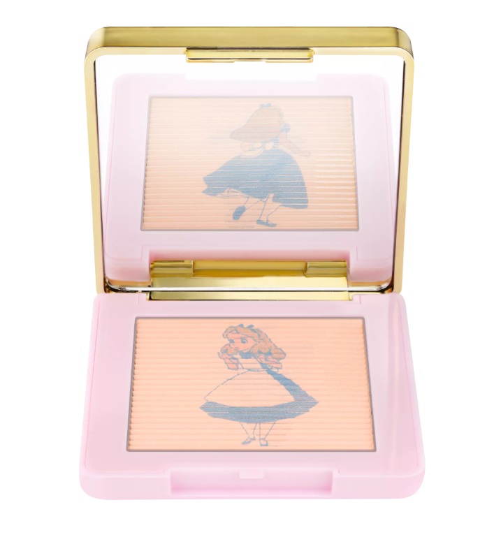 Su fórmula ligera y adaptable al tono de la piel, además, su espejo interior con efecto lenticular revela una nueva pose de Alicia cada vez que lo abres.