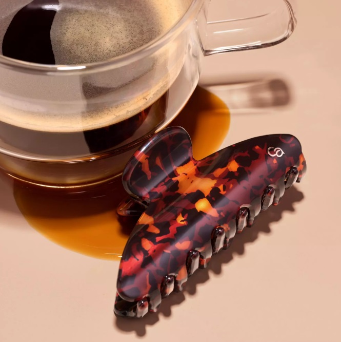 Catrice Espresso Yourself Pinza para pelo, esta pinza combina tonos marrones claros y oscuros en un acabado marmolado brillante, ideal para añadir un toque de estilo a tu look diario.