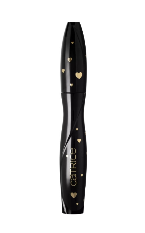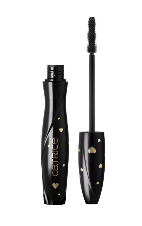 Catrice Valentine Who? Glam & Doll Volume Mascara tiene una fórmula negra intensa para pestañas definidas y volumizadas, con un diseño de edición limitada con corazones dorados.