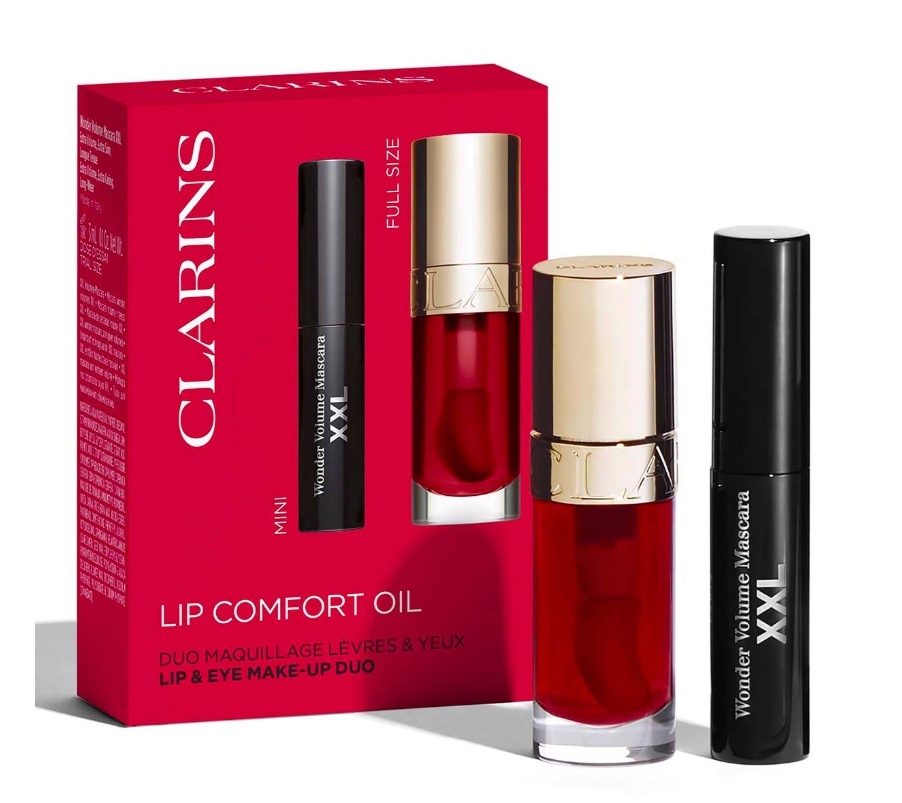• CLARINS LIP OIL COMFORT 03 CHERRY 7 ML + MINI MASCARA WONDER VOLUME XXL 3 ML SET REGALO