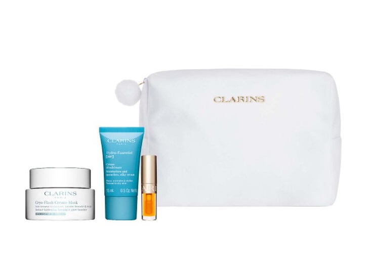 • CLARINS CRYO-FLASH MASCARILLA EN CREMA 75 ML + ACEITE DE LABIOS 1,4 ML+ NECESER SET REGALO