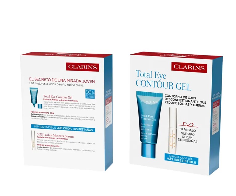 • CLARINS TOTAL EYE CONTOUR GEL 20 ML + MASCARA SUPRA LIFT & CURL 3 ML SET REGALO