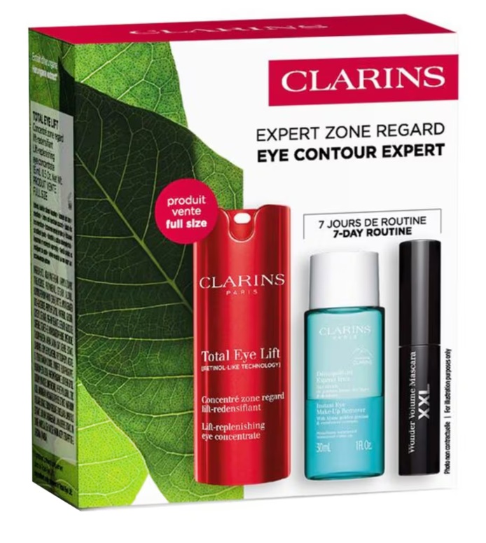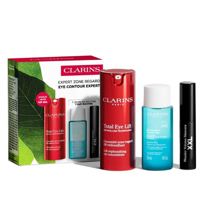 • CLARINS TOTAL EYE LIFT 15 ML + DESMAQUILLANTE OJOS 30 ML + MASCARA WONDER VOLUME XXL 3 ML SET REGALO