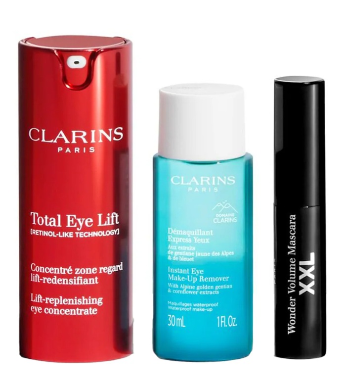 CLARINS TOTAL EYE LIFT 15 ML + DESMAQUILLANTE OJOS 30 ML + MASCARA WONDER VOLUME XXL 3 ML SET REGALO