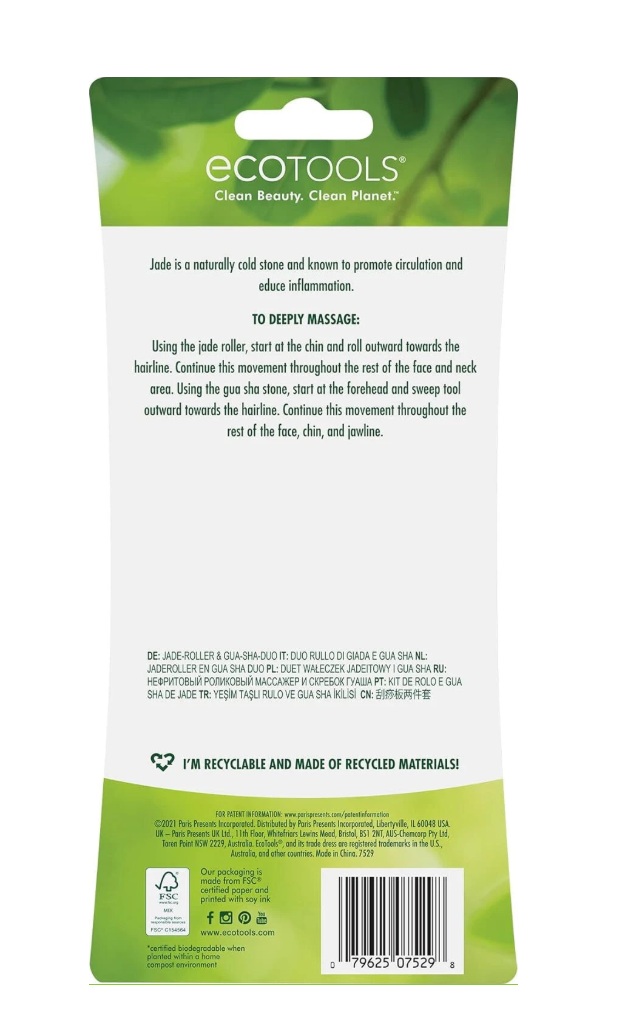 ECOTOOLS RODILLO DE JADE DOBLE + GUA SHA DE JADE