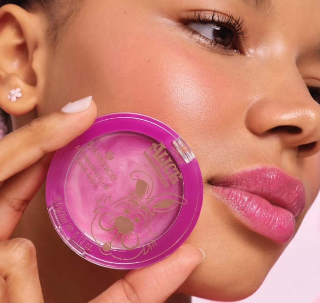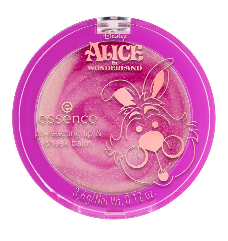 Essence Alice in Wonderland bálsamo de labios y mejillas Ph reactivo es un ligero bálsamo en crema reacciona al nivel de pH de tu piel y se transforma en un suave tono rosa baya con un sutil brillo dorado.