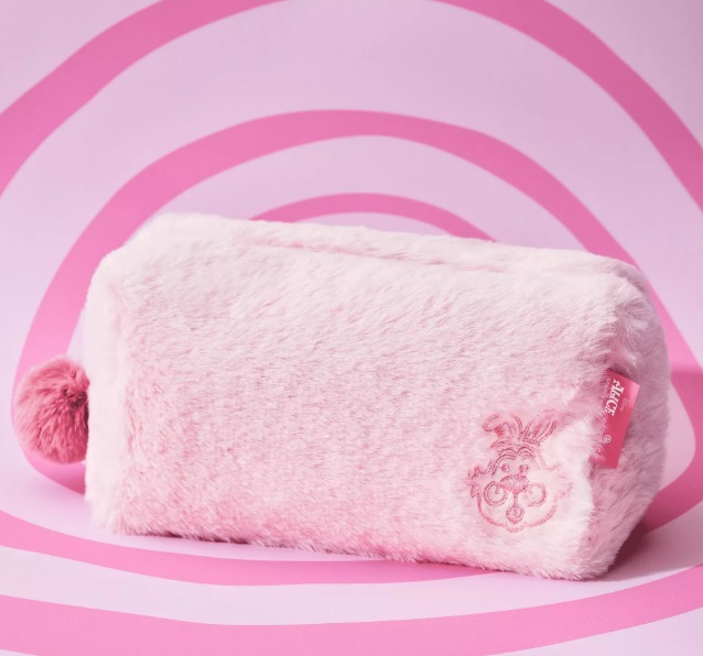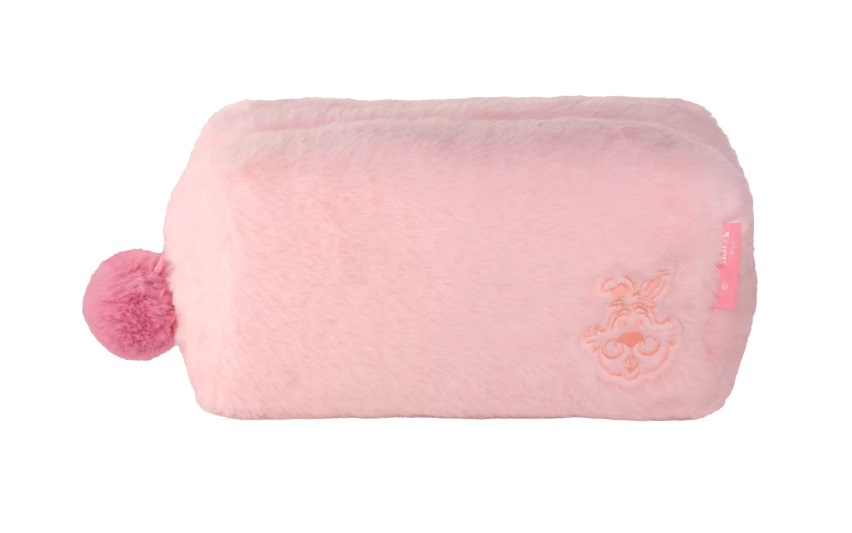 Essence Alice in Wonderland Neceser de maquillaje fluffy esta fabricado con un suave material afelpado en tono rosado y decorada con un pompón esponjoso y una cremallera en tono oro rosado.