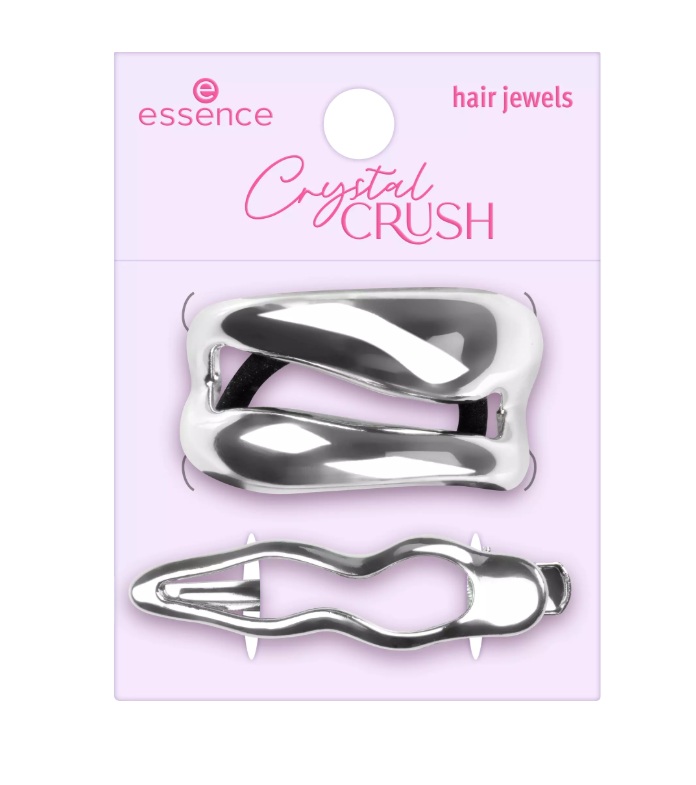 Essence Crystal Crush Joyas para cabello incluye una goma y una pinza para el cabello con un diseño de joya para un look perfecto y deslumbrante.
