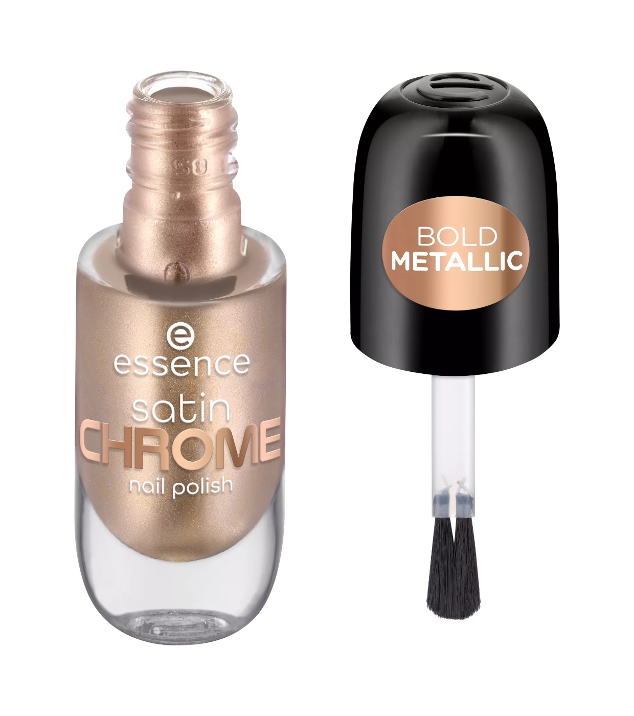 Dale un descanso a tu esmalte neutro y trae a tus uñas un acabado atrevido con el esmalte de uñas metálico satin Chrome de essence.