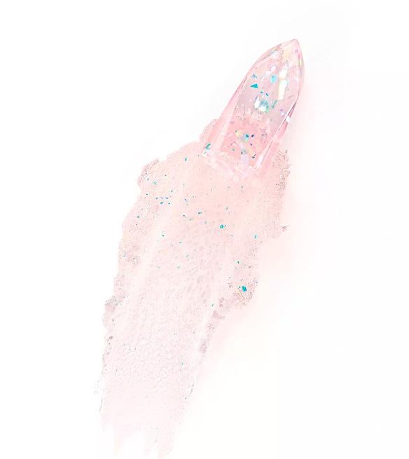 La barra de labios enamora con una textura sorprendente y semitransparente con partículas holográficas.