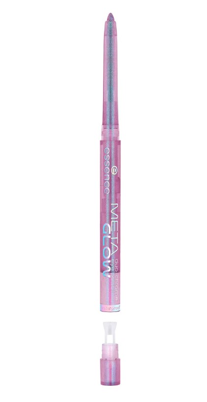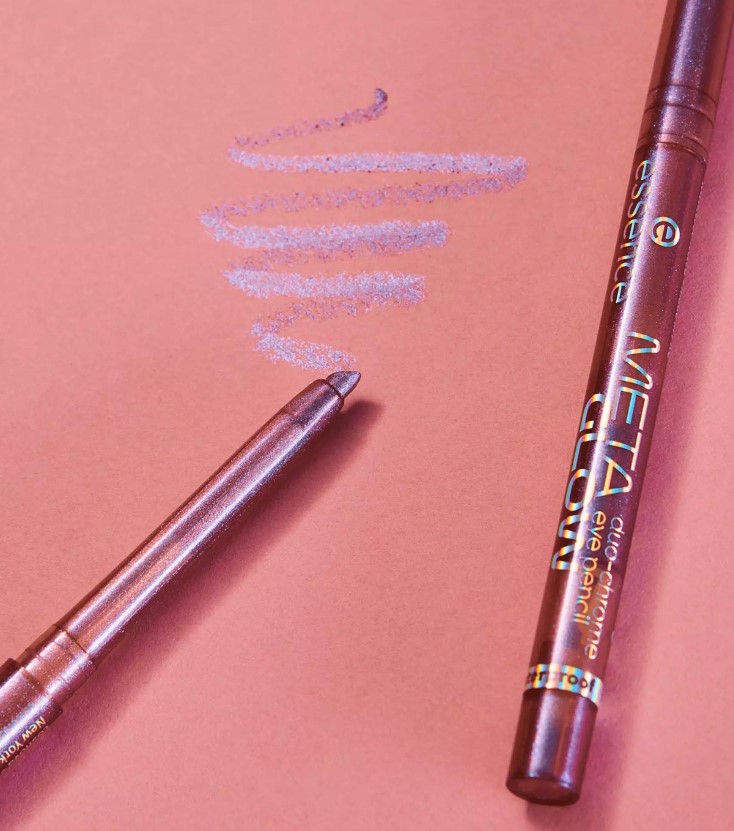 Essence Meta Glow Lápiz de ojos Duocromático cambia de color en función del ángulo y la luz. Su suave textura duocromática es resistente al agua y a prueba de roces.