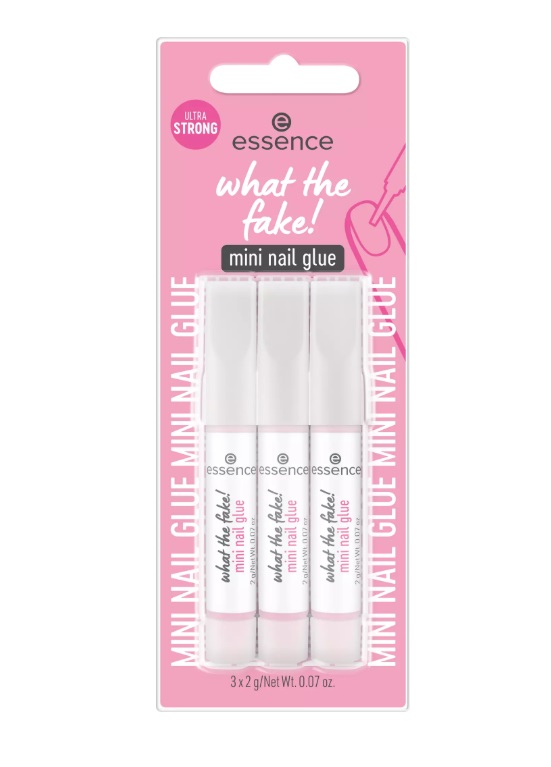 Essence Set de 3 mini pegamentos para uñas What The Fake! esta diseñado con una boquilla pequeña y delgada, la aplicación es muy precisa, lo que garantiza una sujeción limpia y segura. La textura rosa que seca de forma transparente