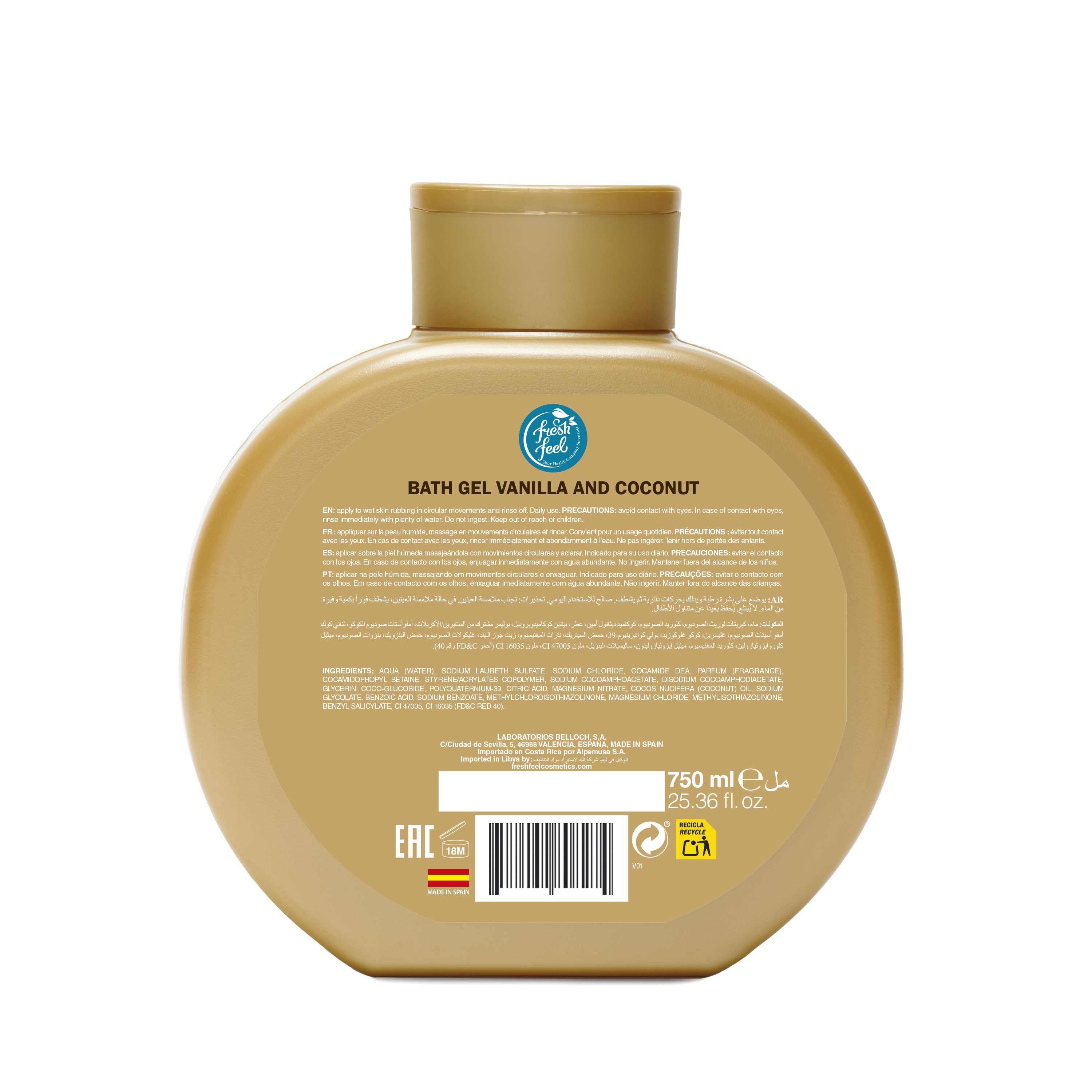 • FRESH FEEL GEL DE DUCHA MOUSSEL COCO 750 ML