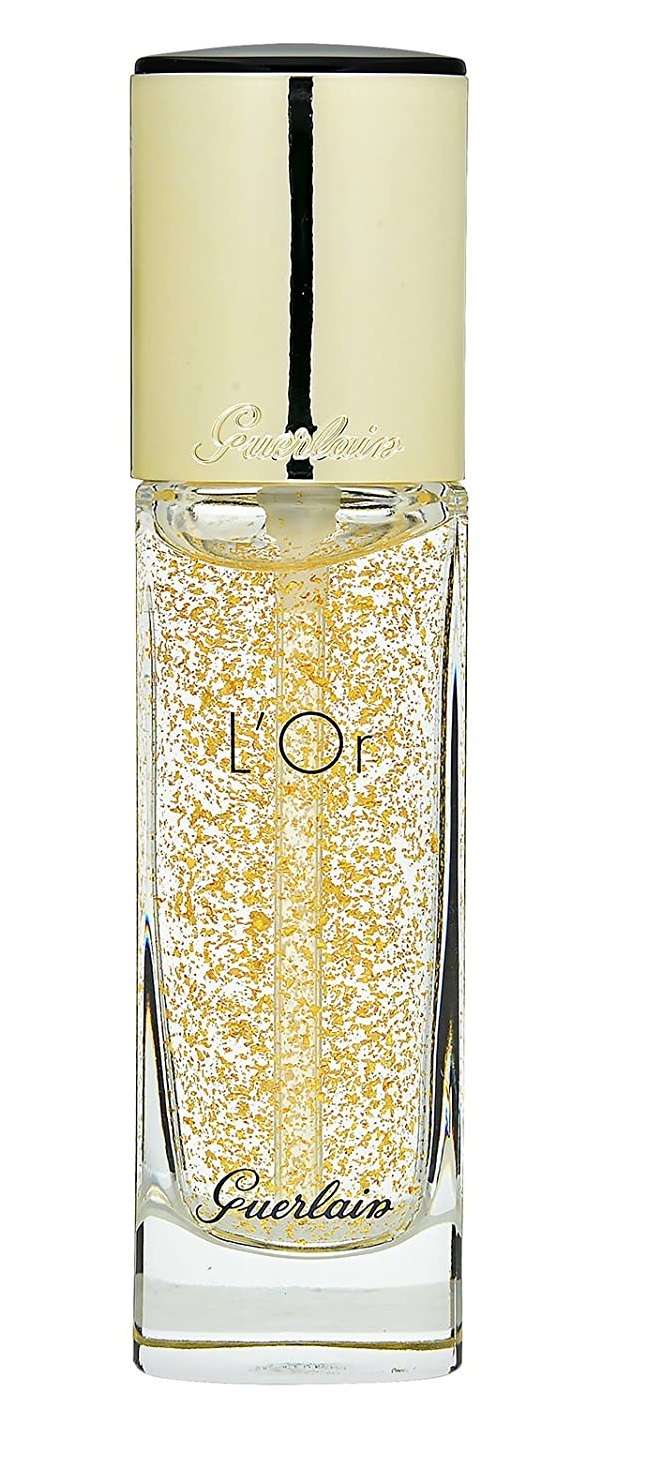 El oro es el más precioso de los metales. Gracias a su pureza, refleja la luz de forma excepcional. Guerlain reinterpreta un saber hacer extraordinario en una fórmula mágica: una base de maquillaje embellecedora espolvoreada con láminas de oro de 24 quilates. Como las piezas de joyería más lujosas, las láminas se han transformado en partículas sumamente brillantes y reflectantes y dispersado, a continuación, en un gel suave hidratante. El reflejo de un metal cálido, la frialdad del hielo: los opuestos se atraen en esta esencia que ofrece destellos de oro puro.