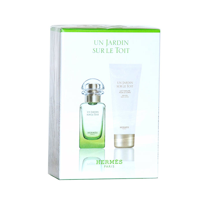 Un jardin sur le toit eau de toilette 50 ml vapo + leche perfumada para el cuerpo 75 ml. Todo ello, presentado en estuche-regalo de Hermes.