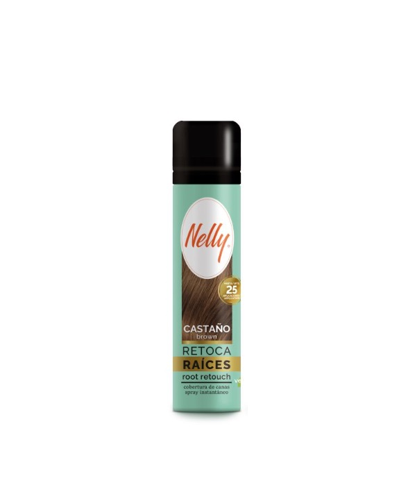 Nelly Retoca Raices es un spray diseñado para el retoque inmediato de las raíces del cabello, ideal para cubrir canas y mantener el color de manera uniforme.