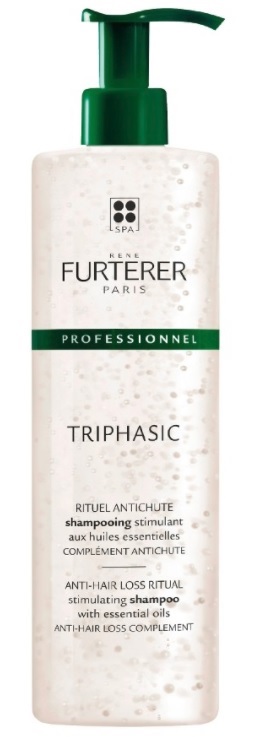 El champú estimulante TRIPHASIC de rene furterer asocia dos activos anticaída de alta eficacia, el ATP y el extracto natural de Pfaffia, con los poderes estimulantes de las biosferas de aceites esenciales.